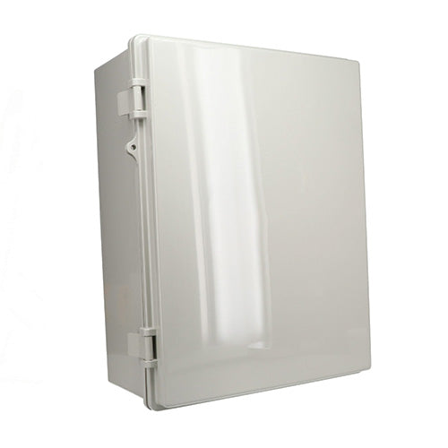 Molded out of light gray material with UL94-5VB flammability rating. Suggested service temperature range -40°C to 70°C
