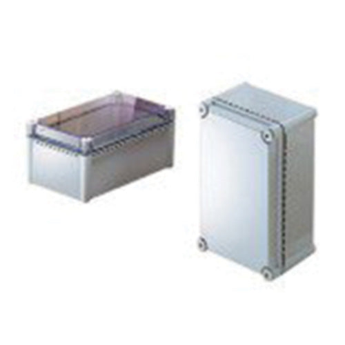ABS/PC blended plastic enclosures are molded out of light gray material with UL94-5VA flammability rating. Suggested service temperature range -40C to +70C.